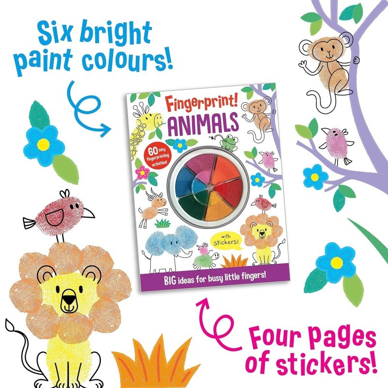 Get ready to have lots of fingerprinting fun with this inky art activity book. With simple step-by-step instructions and an inkpad with six bright paint colours, discover how to create lots of adorable animal pictures by using fingerprints. Plus, there are are four sheets of stickers for extra activity fun.