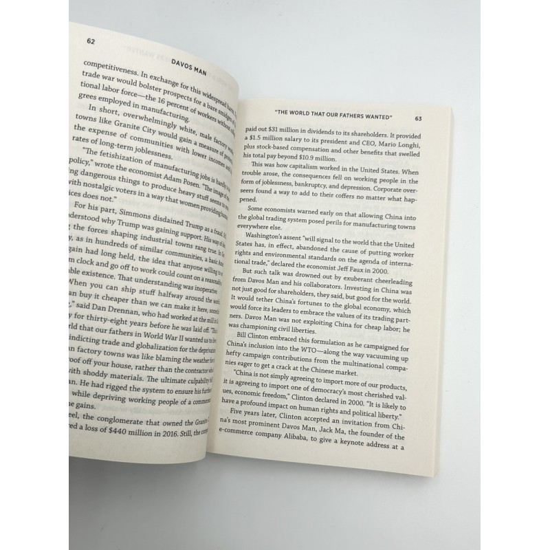 Davos Man 9780063078314 - là một cuốn sách nổi tiếng của tác giả Samuel P. Huntington, xuất bản lần đầu vào năm 2004. Cuốn sách này đề cập đến hiện tượng xã hội mà tác giả gọi là "Davos Man", mô tả công ty hướng tới một cộng đồng quốc tế của người giàu có, quyền lực, và sáng tạo thường gặp nhau tại Diễn đàn Kinh tế Thế giới ở Davos, Thụy Sĩ. "Davos Man" thể hiện sự tham gia tích cực vào kinh tế toàn cầu, góp phần tạo ra các chu kỳ tài chính và thúc đẩy phong cách sống hiện đại. Cuốn sách là một tác phẩm quan trọng về hiểu biết xã hội và kinh tế quốc tế đương đại. Sản phẩm nhập khẩu với giá tốt nhất của NXB HarperCollins được phân phối tại Bookmedi.vn.